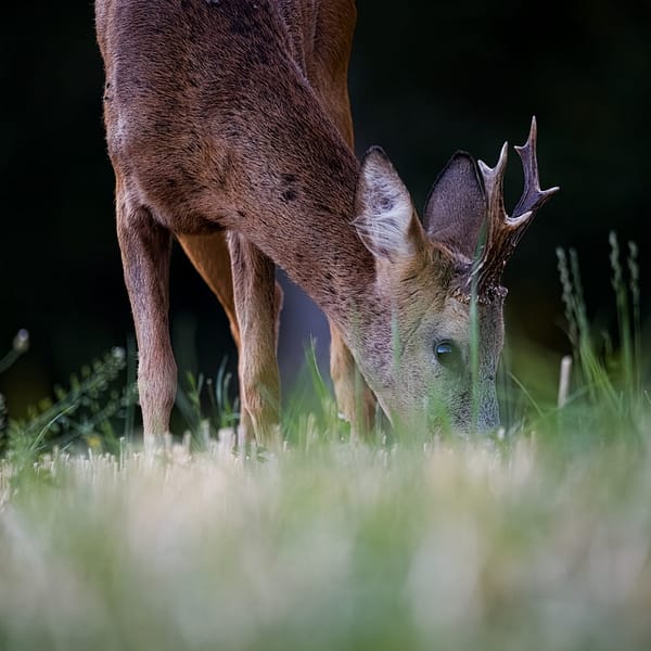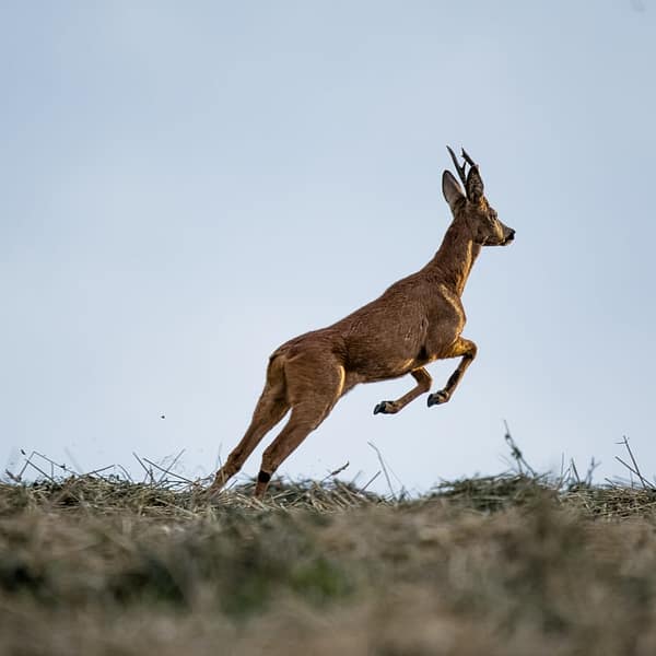 L’hiver arrive et les matins se glace, je me réveil avant les premiers rayons de soleil pour m’installer au plus tôt dans une forêt prêt de chez moi. Après un moment, j’entends du bruit! Un chevreuil dormait derrière un arbre mort couché part terre. Après quelques minutes couché, le chevreuil se lève et vient me tourner autour un peu intrigué